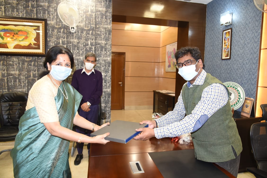 मुख्यमंत्री श्री हेमन्त सोरेन से आज झारखंड मंत्रालय में एचसीएल टेक्नोलॉजी के कॉर्पोरेट वाईस प्रेसिडेंट श्रीमती शिवशंकर सुब्बाराव, वाईस प्रेसिडेंट श्री सुब्बा रमन और जेनरल मैनेजर श्री सुंदर रमन ने मुलाकात की ।